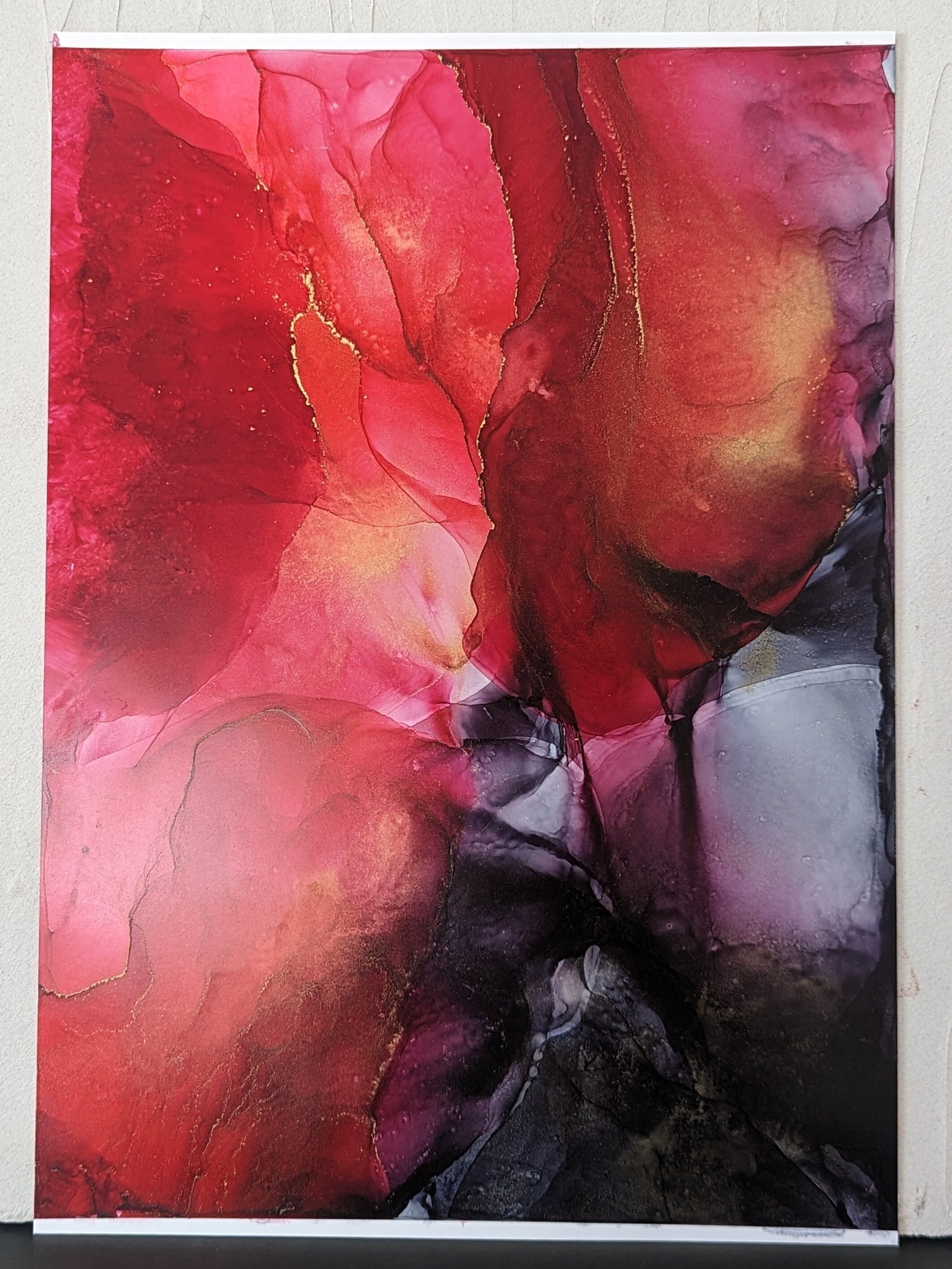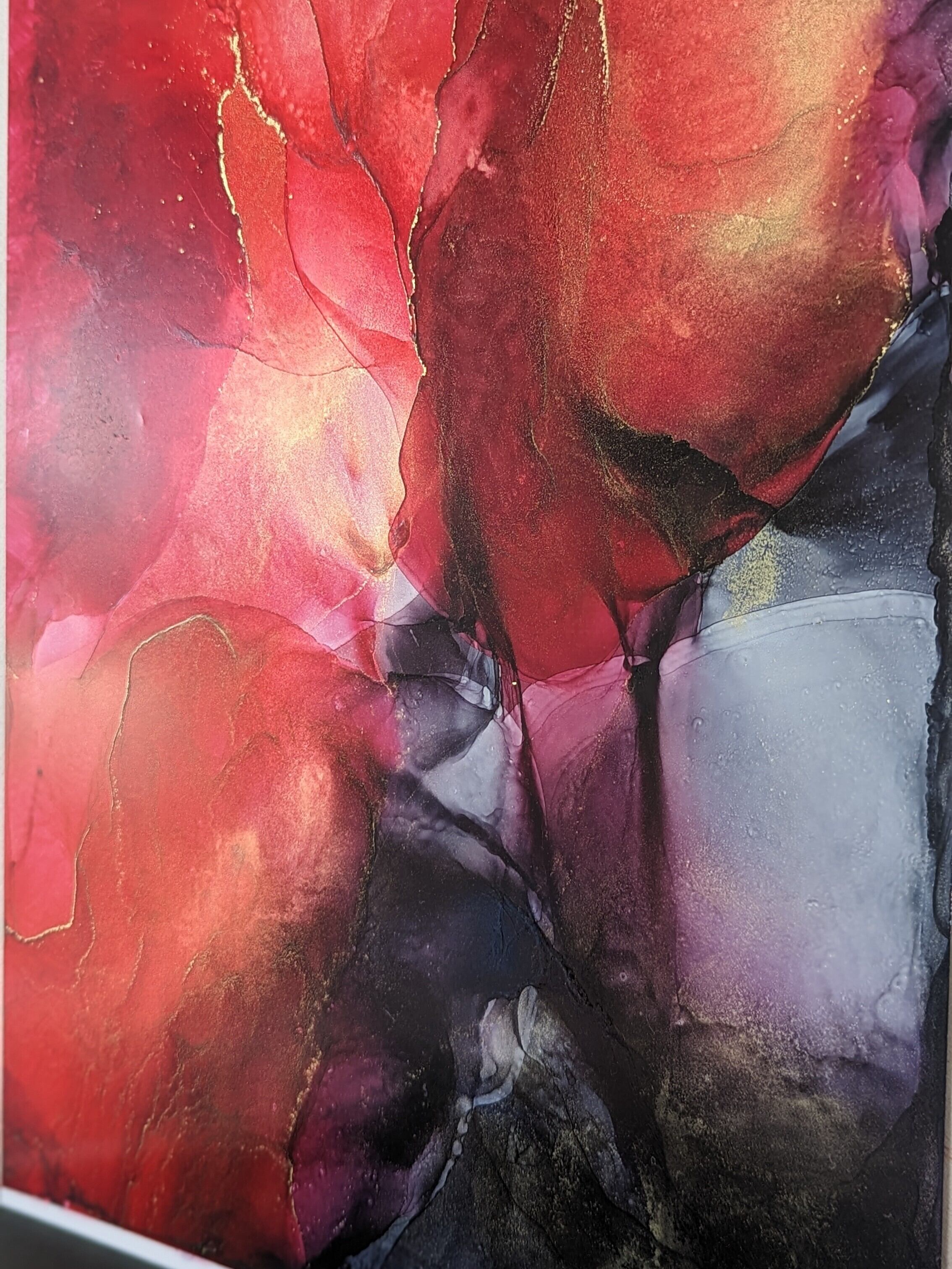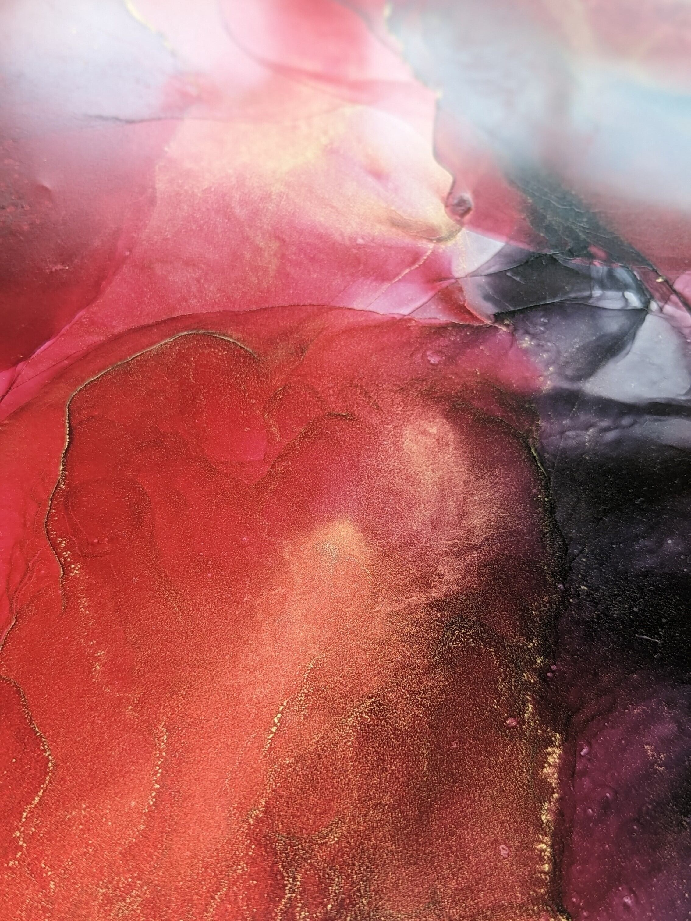 アルコールの動きとインクの混ざり合い、メタリックの広がりを風の力を借り、一瞬一瞬を捉えていくartです。