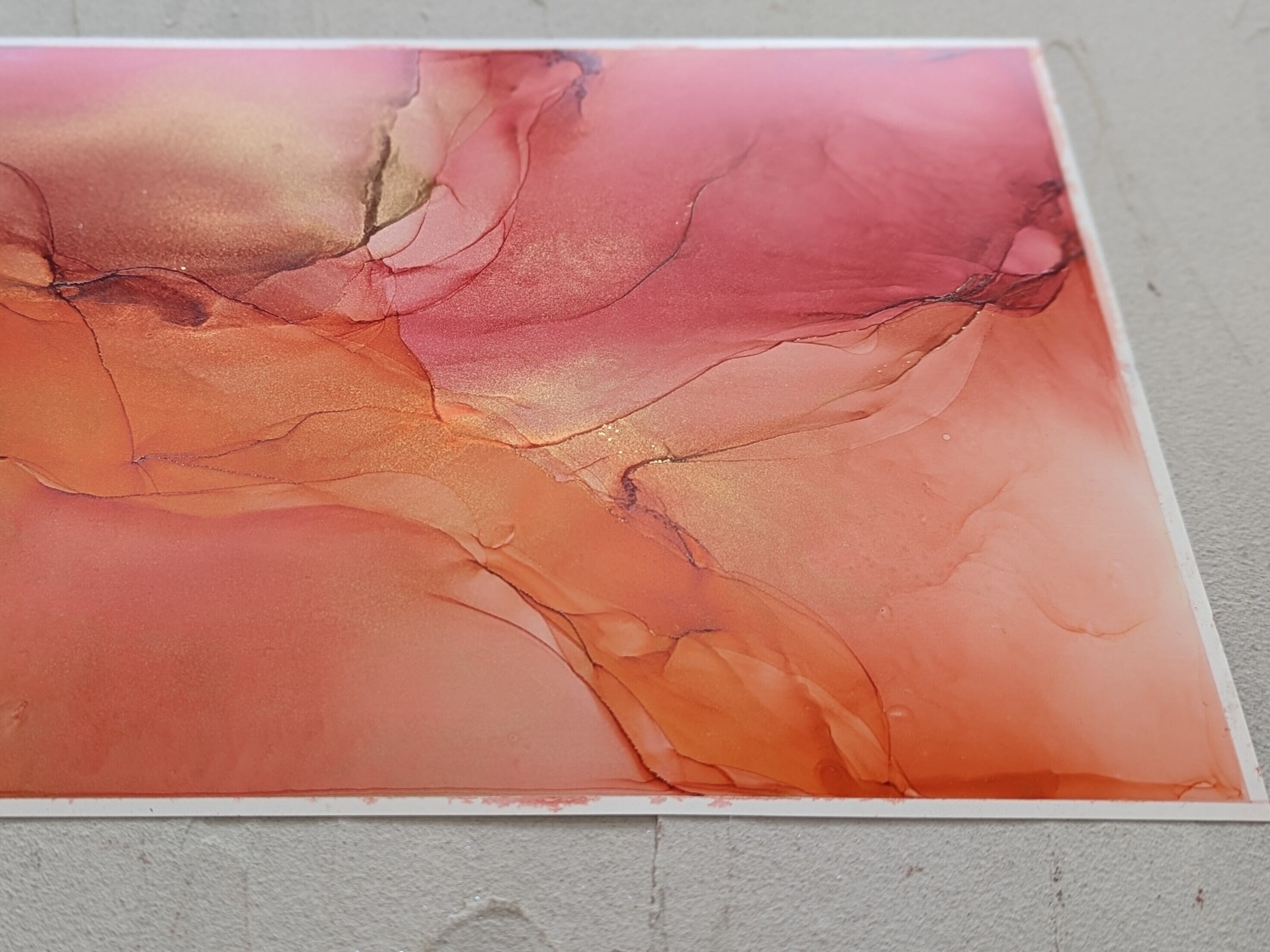 アルコールの動きとインクの混ざり合い、メタリックの広がりを風の力を借り、一瞬一瞬を捉えていくartです。